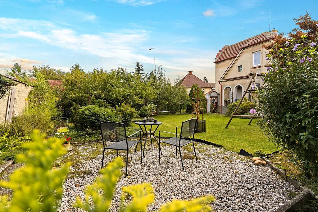 Za domem se nachází krásná zahrada o rozloze 272 m², která nabízí prostor pro odpočinek, grilování s přáteli či pěstování vlastní zeleniny — a to vše jen pár kroků od centra města.