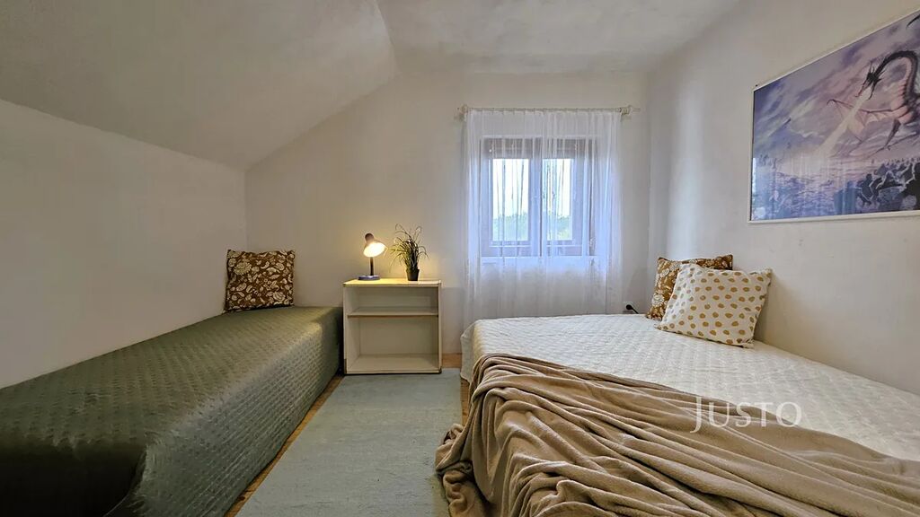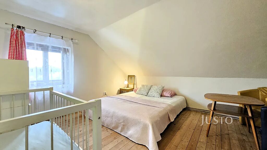 V obývacím pokoji jsou krbová kamna. V podkroví jsou situovány dva samostatné pokoje a volný půdní prostor s možností dalšího rozšíření.