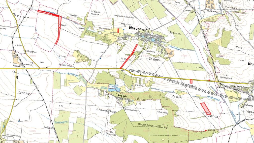 V katastrálním území Nesuchyně, okres Rakovník, nabízím k prodeji soubor zemědělských pozemků zapsaných na listu vlastnictví č. 322. Jedná se o parcely č. 4119, 4118, 4117, 4116, 4097, 4092, 4082, 4050, 4035, 4016, 3810, 3177, 3176, 2962, 2955, 2954, 2953 a 2951.