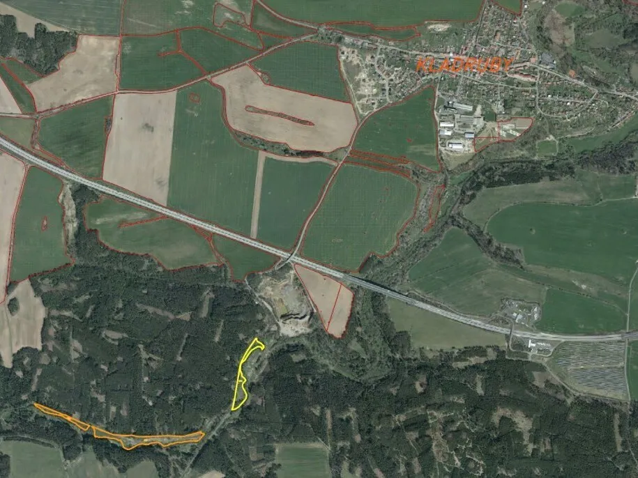 Předmětem dražby je soubor pozemků o celkové výměře 42 411 m2 nedaleko obce Kladruby.