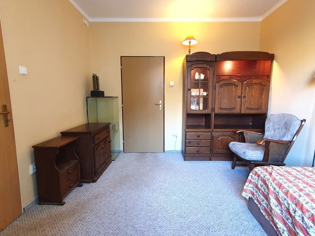 Byt sestává ze vstupní chodby, 2 samostatných pokojů (22 m2 a 14 m2), které mohou být vzájemně navíc průchozí, kuchyně, koupelny, WC a balkónu. Byt se nabízí kompletně zařízený kvalitním holandským nábytkem z masivu viz foto. Kuchyně je vybavena plynovým sporákem, lednici s mrazákem, nádobím a kuchyňské vybavením včetně el. odšťavňovače a rychlovarné konvice a vestavěnou pračkou. V koupelně je sprchový kout a umývadlo. Dále samostatné WC a vstupní chodba s vestavěnou šatní skříní a věšákovou stěnou se zrcadlem. Na podlaze je v obou pokojích koberec, v chodbě plovoucí podlaha, jinak dlažba. Okna jsou plastová se žaluziemi.