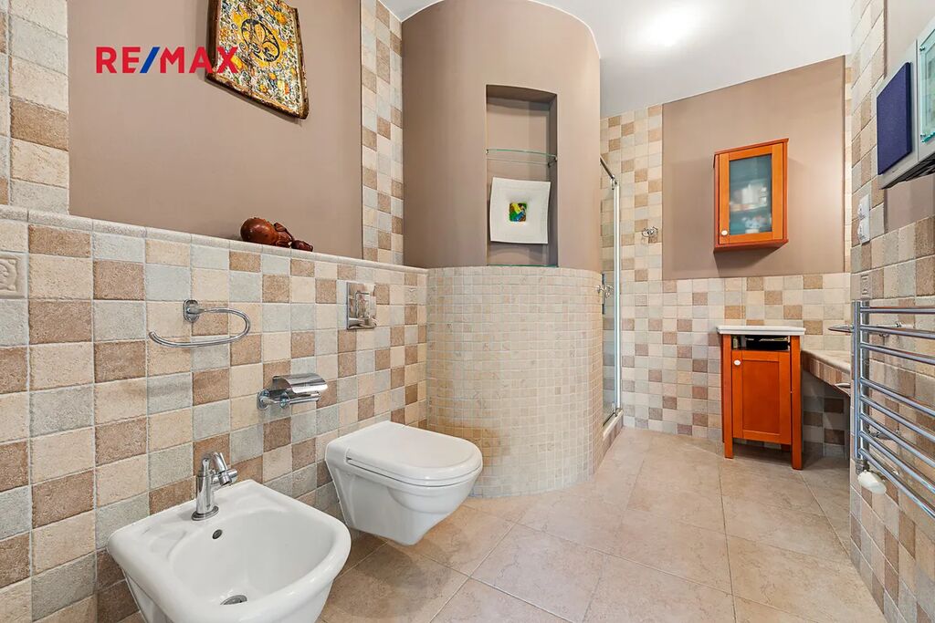 Interiér bytu je laděn do světlých přírodních tónů a byl zařízen s důrazem na vkus, kvalitu a nadčasový design. Byt nabízí výborně řešenou dispozici s prostorným obývacím pokojem, kuchyní a jídelní částí, oddělenou klidovou zónou se dvěma ložnicemi a třemi koupelnami. Každý detail byl promyšlen — od rozšířených dveřních otvorů po dokonalé technické vybavení.