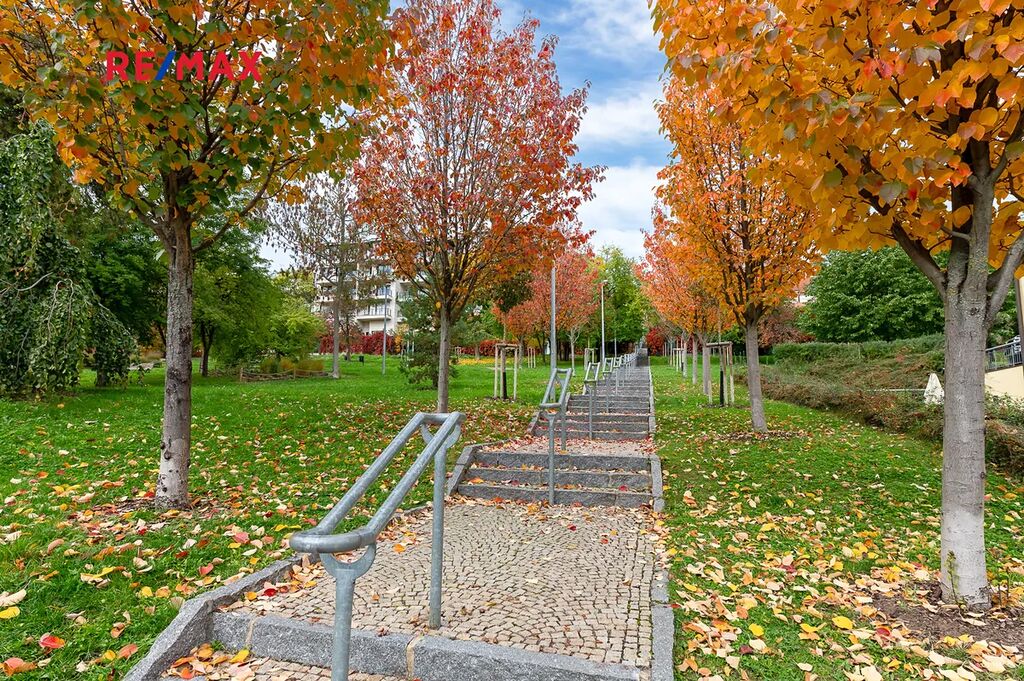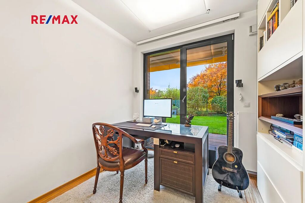 Nabízený byt 4+kk o ploše 120 m² se nachází v přízemí s přímým vstupem do soukromé zahrady o rozloze 153 m², která přechází přímo do parku. Díky jižní orientaci je byt celý den plný světla. Součástí prodeje jsou také dvě garážová stání a sklep.