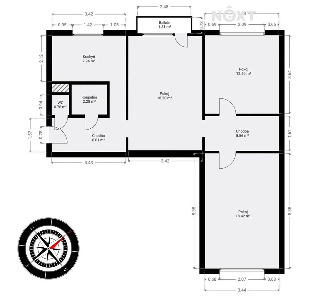 Pronájem pěkného bytu 3+1 s balkonem, o rozměru nyní 74 m2 obytné plochy v roce 2026 díky realizaci zvětšení balkonů 79 m2, v osobním vlastnictví, v ulici 17.listopadu, v městě Zábřeh.