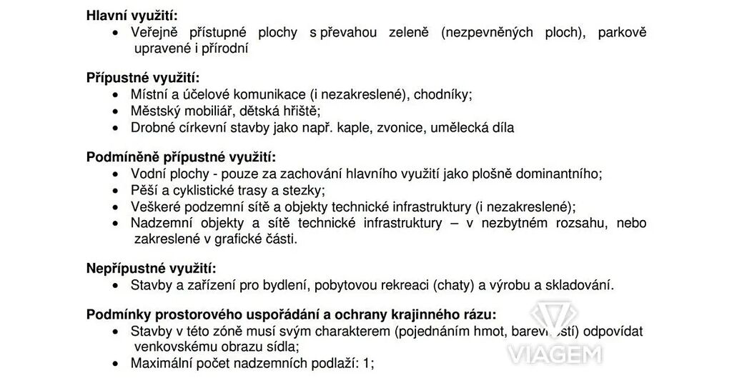Možnosti využití pozemků jsou dány územní plánem, který předurčuje pozemky pro rekreační zástavbu se specifikací “ZS - zeleň sídelní ostatní”.