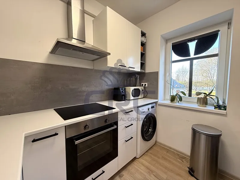 Byt je částečně vybaven, a to kuchyňskou linkou včetně spotřebičů, umyvadlovou skříňkou v koupelně a všechny místnosti jsou vybaveny svítidly.