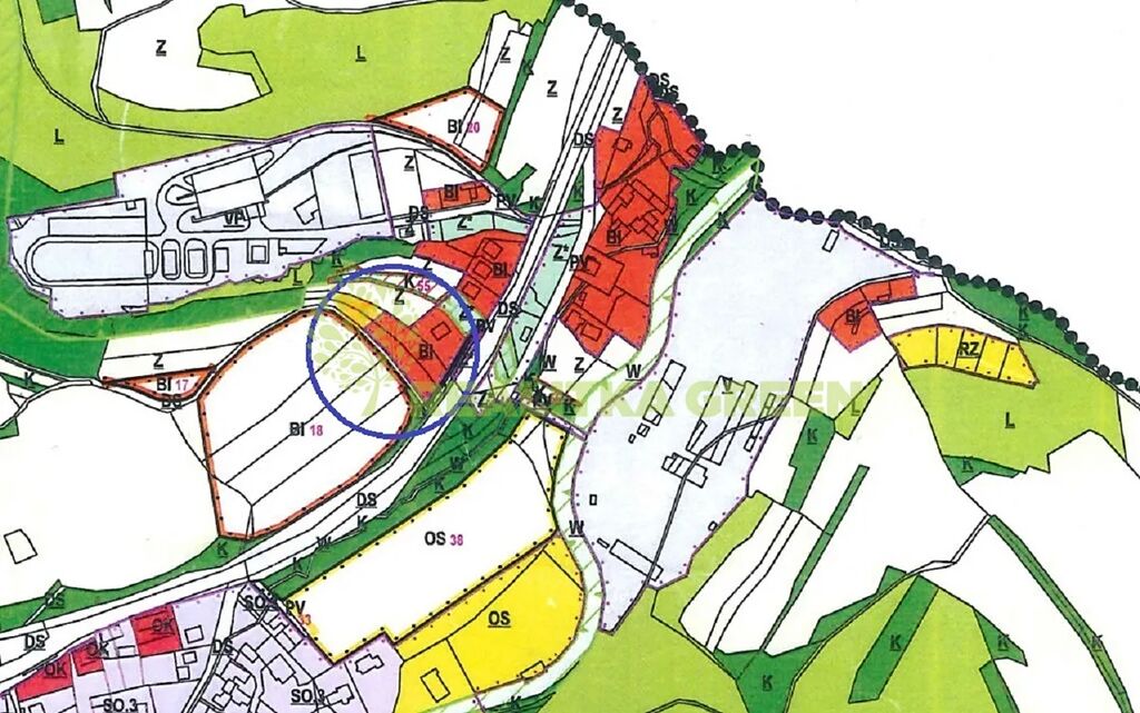 Celková plocha je 982 m2. Pozemek je v územním plánu určen k bydlení.
