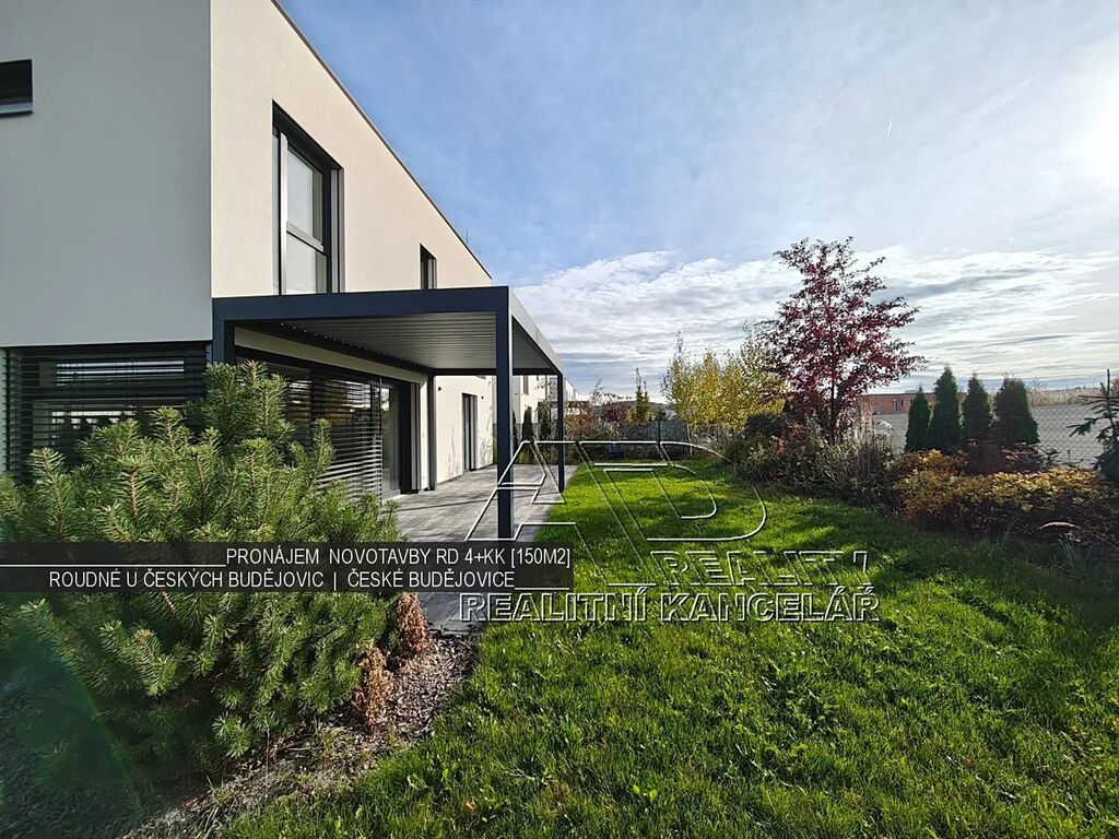 Ve výhradním zastoupení majitele bytu nabízíme k pronájmu novostavbu (2017/2018) zděného samostatně stojícího patrového rodinného domu velikosti 5+kk s prostornou klimatickou terasou a krytým parkovacím stáním pro 2 auta, terasou a vzrostlou zahradou, umístěného v obytné zástavbě rodinných domů obce Roudné u Českých Budějovic, České Budějovice.
