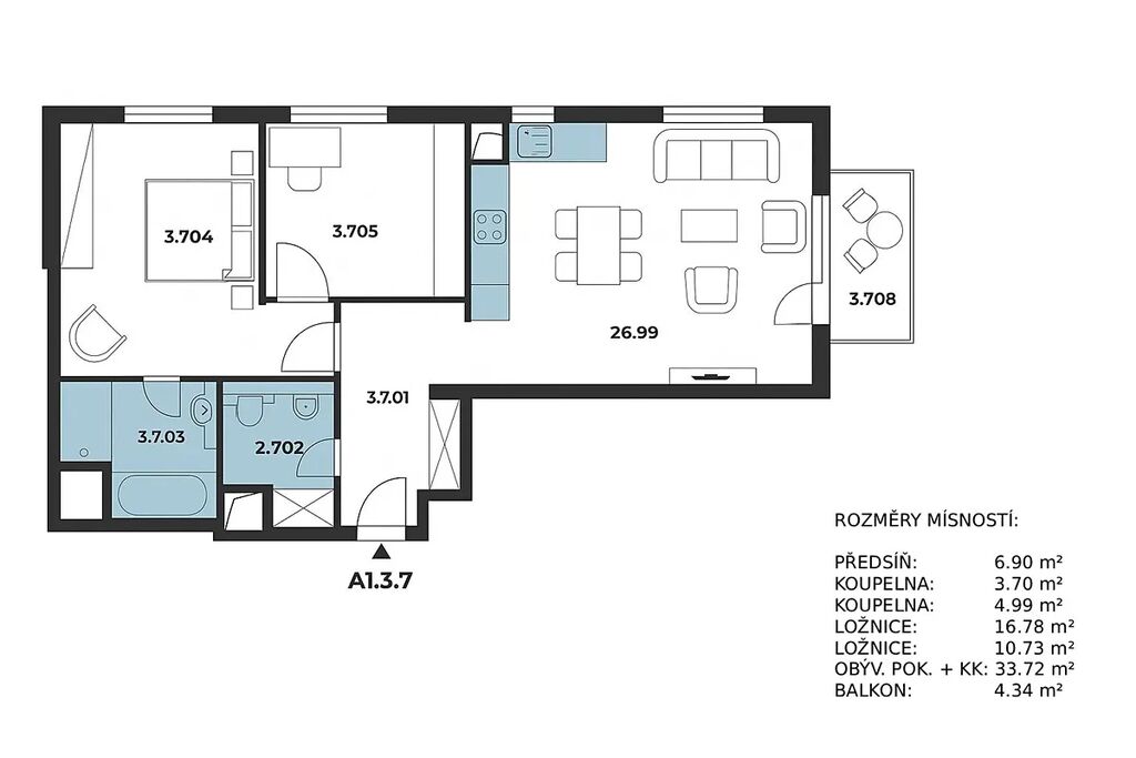 Prodej bytu 3+kk s balkonem, sklepem a parkovacím stáním – Praha 5, ul. Za Mototechnou