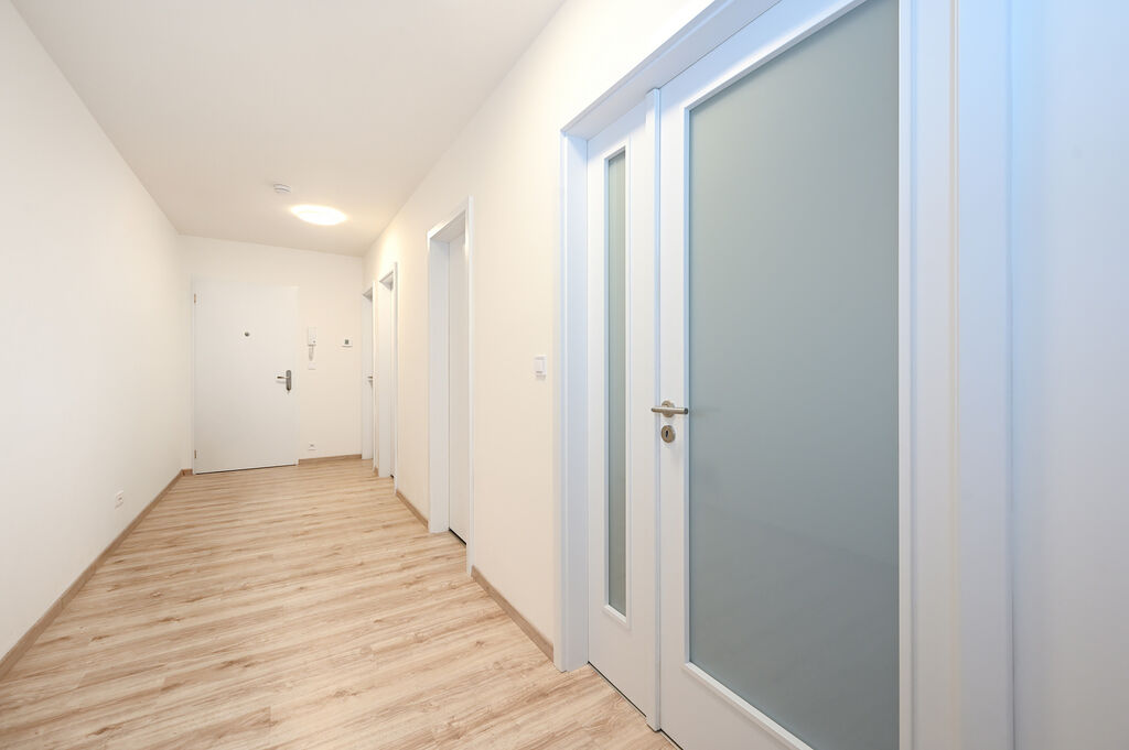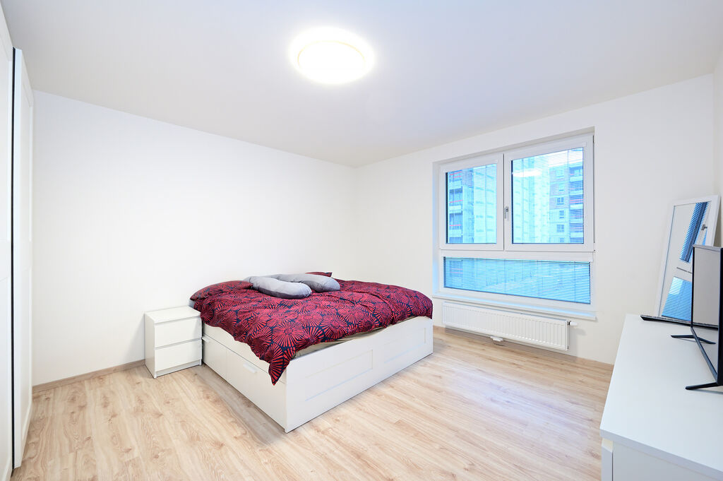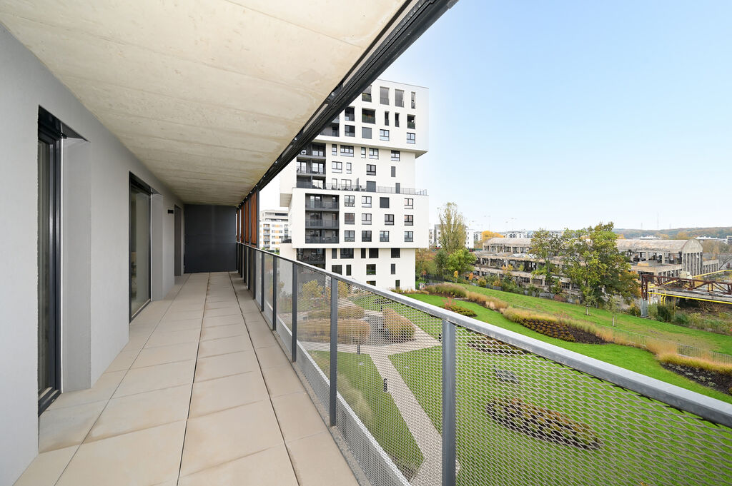 K dlouhodobému pronájmu zde nabízím prostorný byt 3+kk o velikosti 97,4 m² s velkorysou terasou 22,3 m², ke kterému náleží také garážové stání a sklep, obojí již zahrnuto v ceně nájmu. Byt se nachází ve čtvrtém nadzemním podlaží a díky svému umístění poskytuje klidné a světlé bydlení s orientací terasy na jih do zeleně. Sklep je nadstandardně velký, kompletně obezděný, uzamykatelný plnými dveřmi a nabízí vysokou míru zabezpečení.