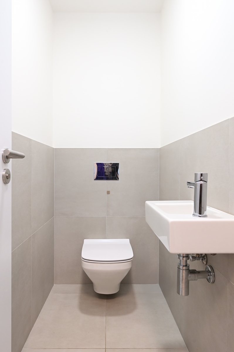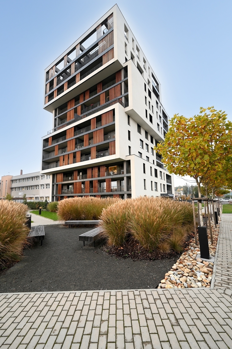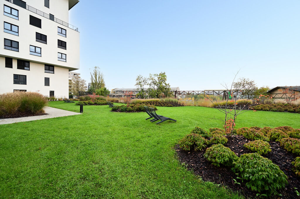Dům spadá do energetické třídy B, tedy velmi úsporné, což zajišťuje nízké měsíční náklady na provoz. Poblíž garážových stání a sklepních kójí je navíc k dispozici praktický mycí box na kola, kočárky nebo venkovní dětské hračky, který mohou využívat všichni obyvatelé domu.