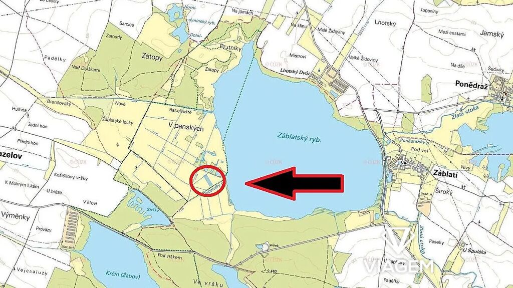 Nabízíme Vám ke koupi pozemek v katastrálním území Záblatí u Ponědraže, v okrese Jindřichův Hradec, LV 358, podíl 1/2, o výměře 2695 m2.