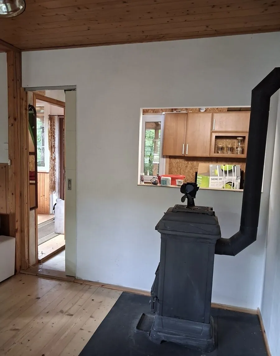 Po částečné rekonstrukci – nová koupelna- podlahové vytápění, plastová okna, kuchyň s myčkou a sporákem.