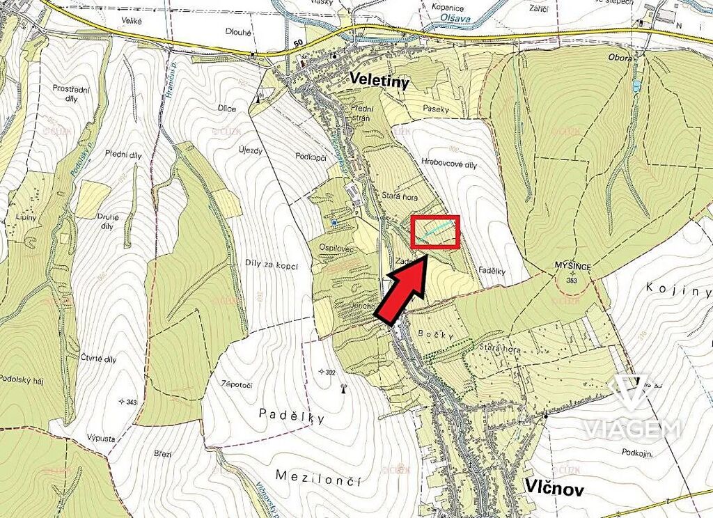 Nabízíme Vám ke koupi pozemky v katastrálním území Veletiny, v okrese Uherské Hradiště, LV 102, podíl 1/6 o výměře 307 m2.