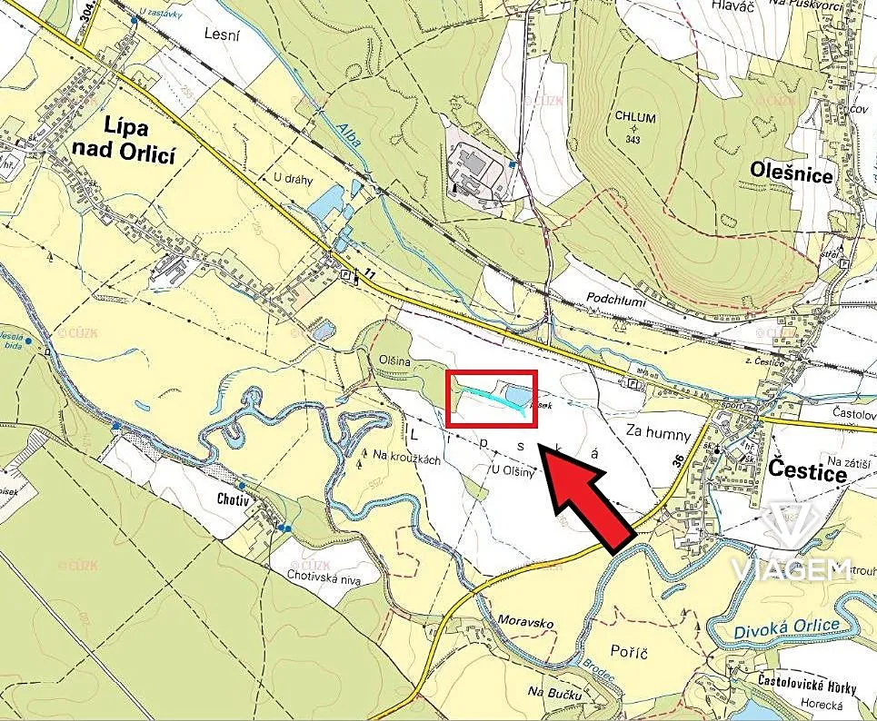 Nabízíme Vám ke koupi pozemky v katastrálním území Čestice u Častolovic, v okrese Rychnov nad Kněžnou, LV 372, podíl 1/3 o výměře 1723 m2.