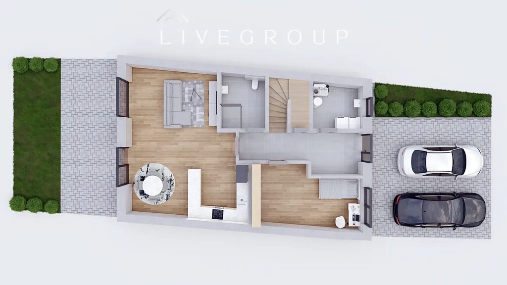 Společnost LIVEGROUP CZ exkluzivně nabízí k prodeji rodinný dům o dispozici 6+kk s podlahovou plochou 177m², který se nachází na pozemku o rozloze 342 m². Tento luxusní dům kombinuje moderní design, prvotřídní technologie a klidné prostředí, přičemž byl navržen s důrazem na komfort a harmonii.
