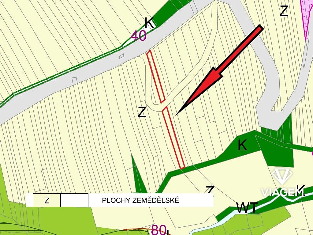 Pozemky jsou přístupné z obecní komunikace a v územním plánu vedeny jako NZ – zemědělství. Díky tomu je lze využít zejména pro zahrádkaření, rekreaci nebo pro umístění menší chatky, maringotky či karavanu. Nachází se v blízkosti rodinných domů a přípojné body inženýrských sítí jsou v řešitelné vzdálenosti.