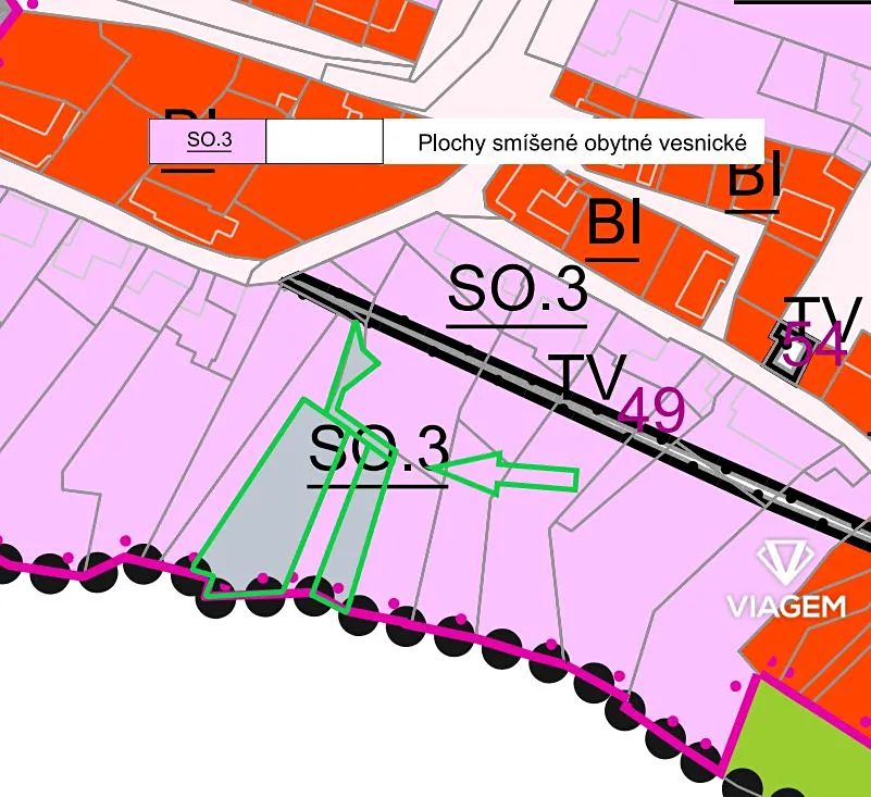 Pozemky jsou vedené jako plochy smíšené obytné vesnické. Přístup na pozemky je zajištěn skrze parcelu vlastněnou Obcí Soběsuky.