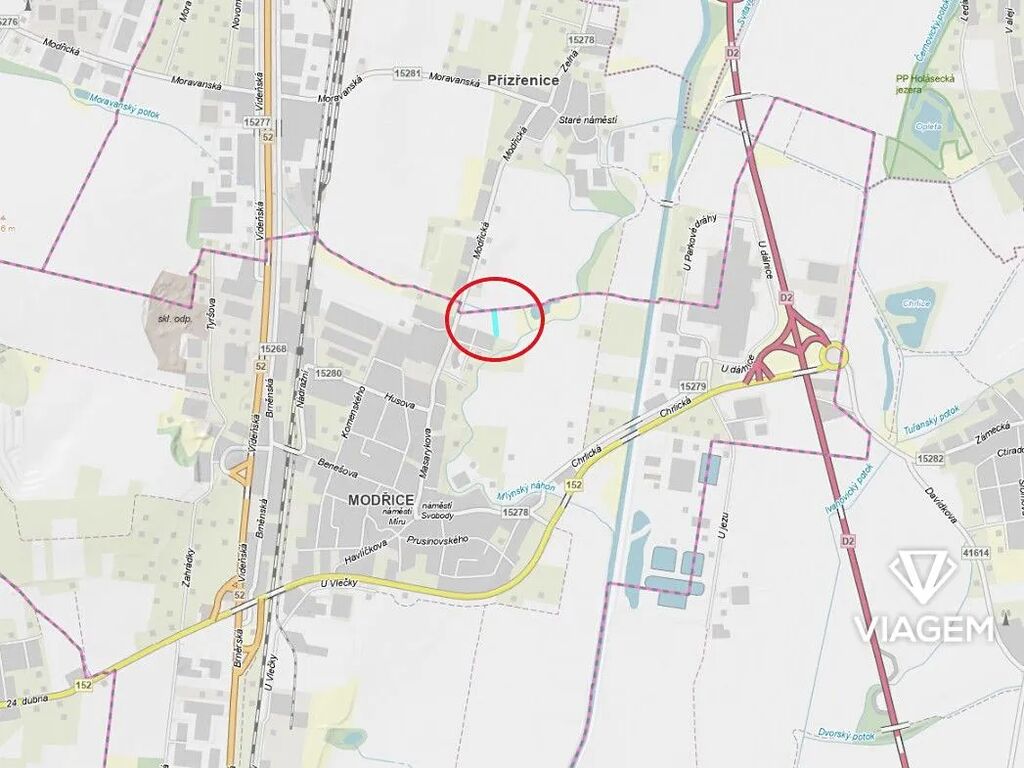Pozemkem prochází plánovaná plocha koridoru pro severovýchodní obchvat Modřic (III/15278).