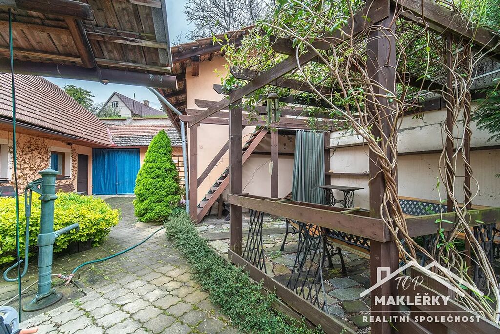 K domu náleží několik přístavků, využívaných jako skladové prostory, dílna a garáž. Voda vede z obecního řádu a také z vlastní studny jako užitková. Nemovitost je napojena na tlakovou kanalizaci a plyn (plynový kotel a vytápění i ohřev vody). Rozvod topení po místnostech je pomocí radiátorů a to již částečně v mědi. Dále zde je v zadní části i kotel na tuhá paliva, který není v současné době využíván. Zahrada je posazena ve vyšší poloze než samotný dům. Přístup zajišťují dřevěné schody vedle garáže.