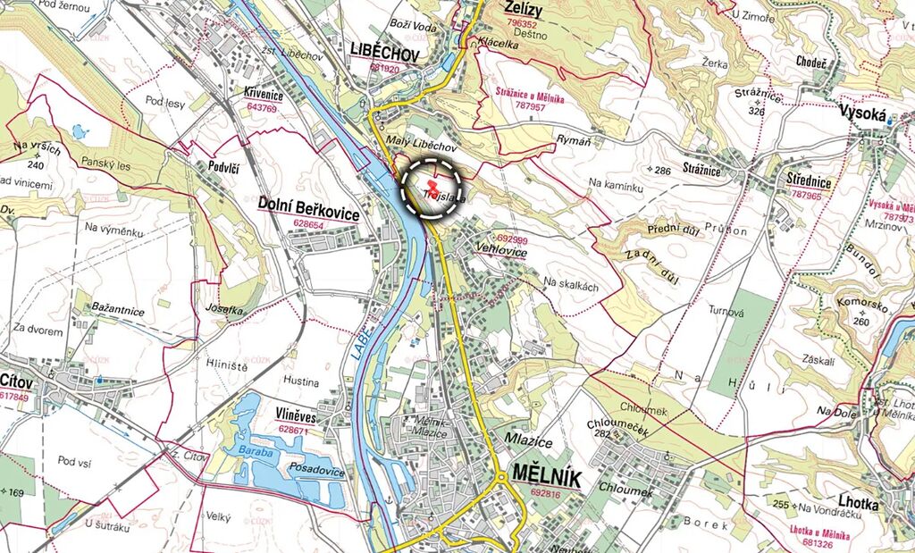 Pozemky se nacházejí v rovinatém terénu, na břehu Labe a přímo u města Mělník. Dle evidence mají výrazně vyšší bonitu než je průměr v oblasti – hodnota BPEJ dosahuje 9,82 Kč/m², zatímco průměrná bonita v katastru je jen 6,79 Kč/m².