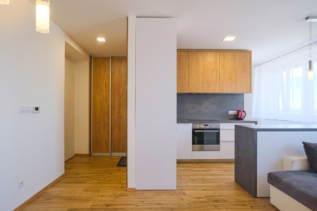 K pronájmu nabízíme moderní a útulný byt 2+kk po kompletní rekonstrukci na ulici 22. dubna 19 v Mikulově. Byt o velikosti 51 m² se nachází ve druhém patře zděného domu a je zcela vybavený nábytkem na míru, kuchyňskou linkou s vestavnými spotřebiči – myčkou, lednicí, mikrovlnnou troubou, troubou, indukční varnou deskou a kávovarem. Interiér působí svěže a harmonicky, je zde podlahové vytápění, okna jsou vybavena zabezpečovacími roletami s funkcí proti stínění, a všechny místnosti jsou orientovány na západní stranu, což zajišťuje krásné výhledy do okolí i dostatek přirozeného světla během dne. K bytu náleží sklep, možnost parkování je přímo před domem a ze zadní části objektu lze využít příjemné venkovní posezení ideální k odpočinku. Byt je připraven k nastěhování ihned, stačí si přinést jen osobní věci a papuče. Mikulov nabízí kompletní občanskou vybavenost v docházkové vzdálenosti – obchody, kavárny, restaurace, školy, školky i zdravotní služby, přičemž dopravní spojení do Brna je výborné jak autem (cca 40 minut), tak přímými autobusovými a vlakovými spoji. Tento byt představuje skvělou kombinaci pohodlí, moderního stylu a výborné polohy pro dlouhodobé bydlení.