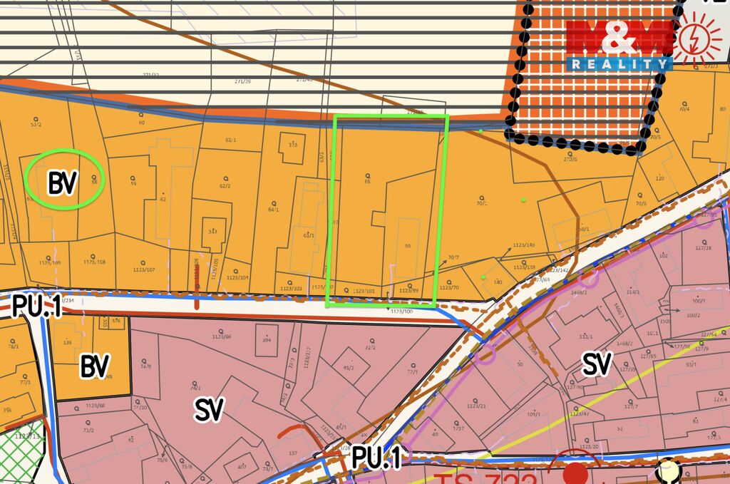 Pozemek je dle územního plánu veden v kategorii BV – bydlení venkovské, což umožňuje výstavbu rodinných domů. Díky své velikosti a tvaru nabízí možnost rozparcelování na 4 až 6 samostatných stavebních parcel, což z něj činí atraktivní příležitost pro developery, investory i individuální stavebníky.