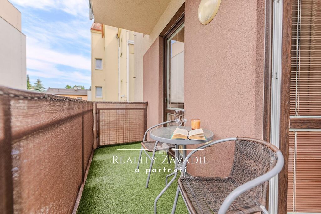 Obývací pokoj a ložnici spojuje balkon, ze kterého je krásný výhled do zeleně ve vnitrobloku.