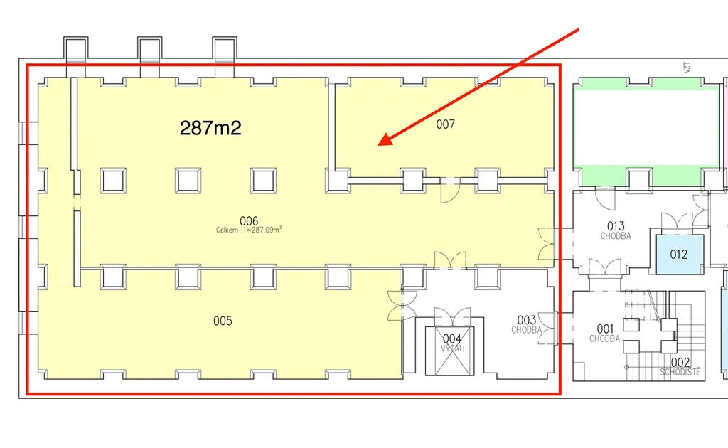 Předmětem pronájmu je sklad o velikosti 283m2. K dispozici je elektřina s vlastním měření spotřeby. Sklad se nachází ve sklepních prostorách budovy. Přístup je po schodišti a nebo nákladní výtahem s nosností do 1000 kg. Vysoké stropy, sklad je prosvětlen sklepními okýnky, možnost větrání. Volný ihned