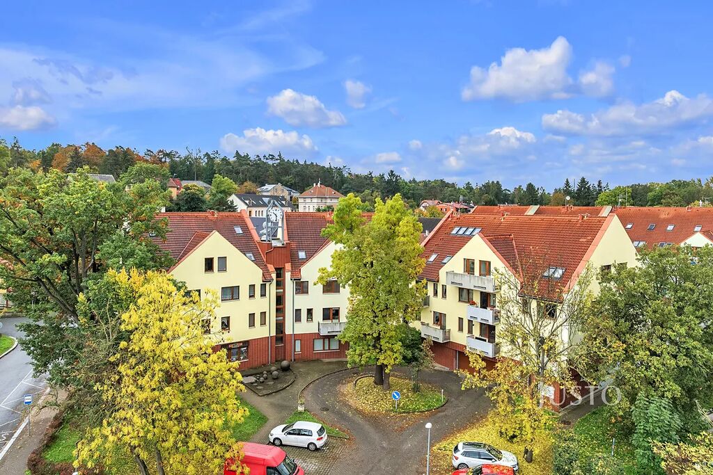 Okolí nabízí veškerou občanskou vybavenost. V obci najdete školku i školu, potraviny přímo v domě, a jen pár kroků od vchodu je zastávka MHD s rychlým spojením na metro Skalka. Za tři minuty pěší chůze se dostanete do kouzelného parku „Panská zahrada“, kde děti zabaví originální hřiště, bludiště i amfiteátr, a Vy si můžete užít klidné odpoledne v přírodě. Blízké okolí nabízí další sportovní a kulturní vyžití – v dosahu je například Krtkův svět, Galerie Golf Hostivař nebo další dětská herna Koala Café.
