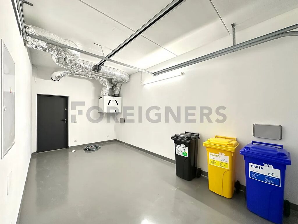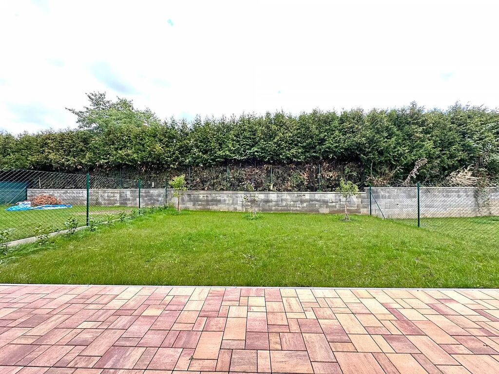 V přízemí domu se nachází prostorná vstupní hala, světlý obývací pokoj propojený s moderní kuchyní o rozloze 30 m². Kuchyň je vybavena kvalitními spotřebiči značky Bosch a nabízí dostatek prostoru pro vaření i společné stolování. Praktická komora (3,6 m²) poskytne úložné zázemí, z obývací části je přímý vstup na zahradu s vydlážděnou terasou, ideální pro posezení či grilování. V této úrovni je k dispozici také toaleta a garáž, do které lze vstoupit přímo z domu, z ulice ale i ze zahrady.