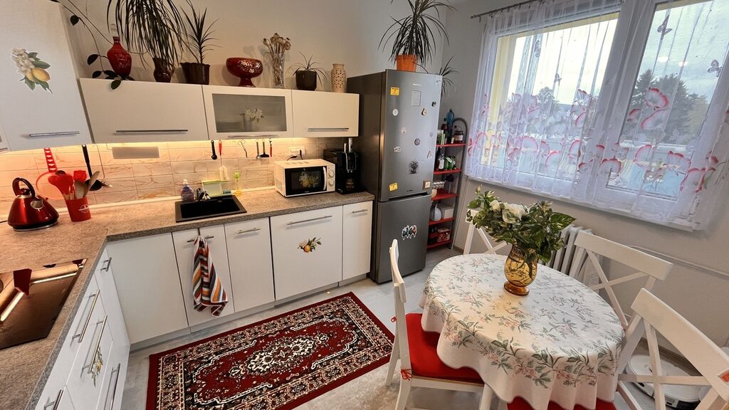 Prodej bytu 3+1+L v Rumburku Dovoluji si vám nabídnout prodej družstevního bytu 3+1 se zasklenou lodžií, zděnou koupelnou, sklepem s užitnou plochou cca 73 m2 v Rumburku. Byt se nachází ve 6. patře revitalizovaného zatepleného domu na sídlišti Podhájí. Nespornou výhodou je jeho výborná poloha. Okna obývacího pokoje a kuchyně směřují na jih a nabízí výhledy do lesa, který je vzdálen necelých 200 m. Odtud můžete podnikat procházky například na nedalekou rozhlednu Dymník.