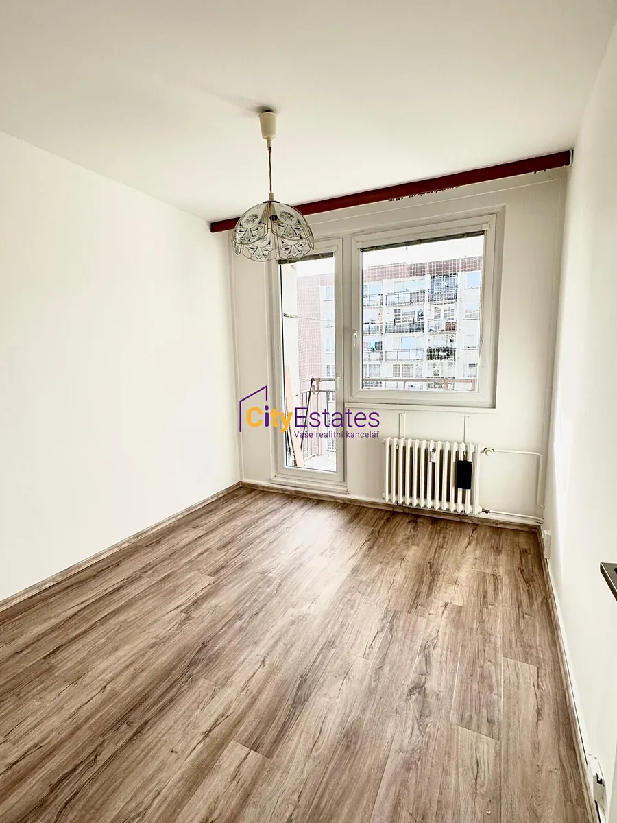 Světlý byt je orientovaný do dvou světových stran, velký obývací pokoj a kuchyň mají krásný výhled do zeleně, dvě ložnice jsou situovány do ulice, lodžie je umístěná u jedné z ložnic. V koupelně je vana, WC je samostatné.
