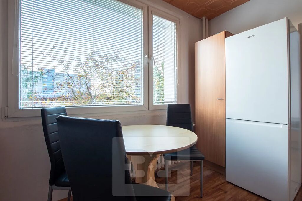 Nabízí se částečně vybavený, přičemž po dohodě je možné část nábytku odstranit dle potřeb budoucího nájemce. Dispozice bytu poskytuje dostatek prostoru pro rodinu i pro spolubydlení, který hledá komfortní a praktické bydlení.