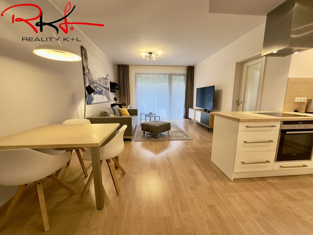 Nabízíme Vám k pronájmu elegantní a plně vybavený byt o dispozici 2+kk s celkovou podlahovou plochou 77 m² a prostornou terasou o velikosti 18 m². Byt se nachází v 1. NP prestižního projektu Rezidence Park Baarova v klidné části Prahy 4 – Michle.