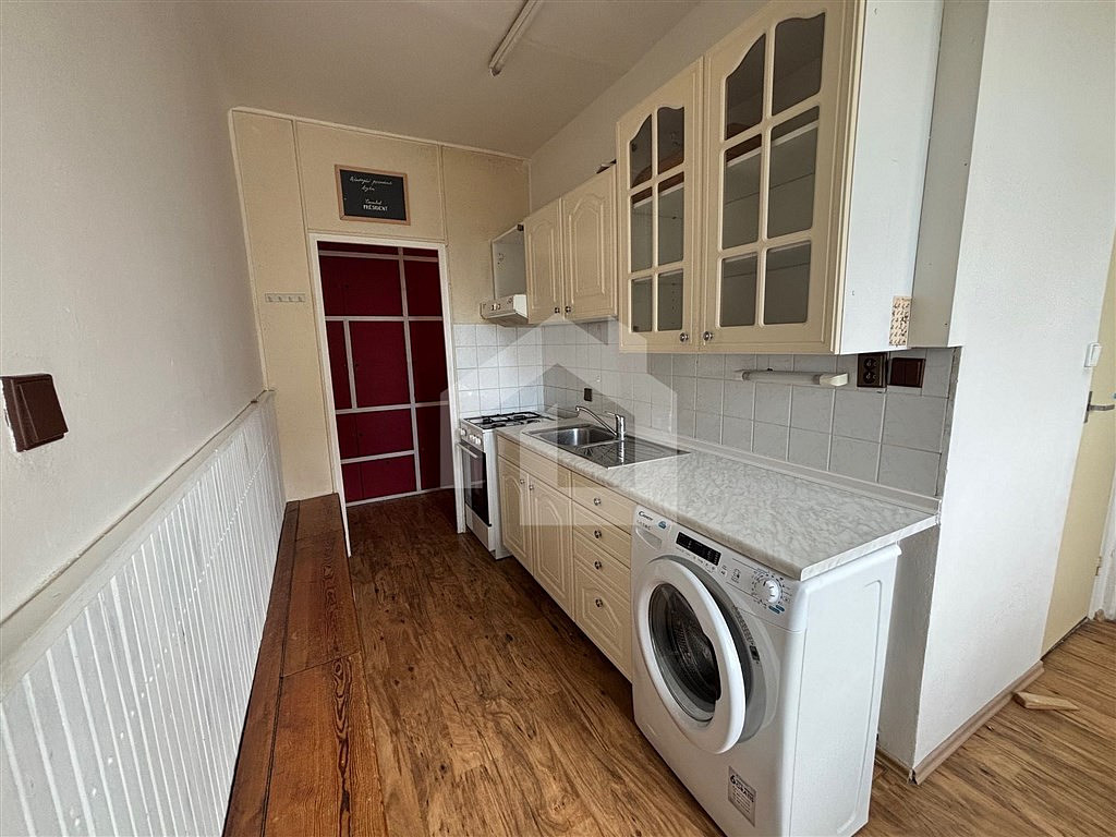 Byt se nachází v 9. patře panelového domu, je vybaven nábytkem a elektrickými spotřebiči (pračka, lednice, trouba) a nabízí 3 samostatné neprůchozí obytné pokoje, kuchyni s kuch. koutem a koupelnu a samostatné WC.