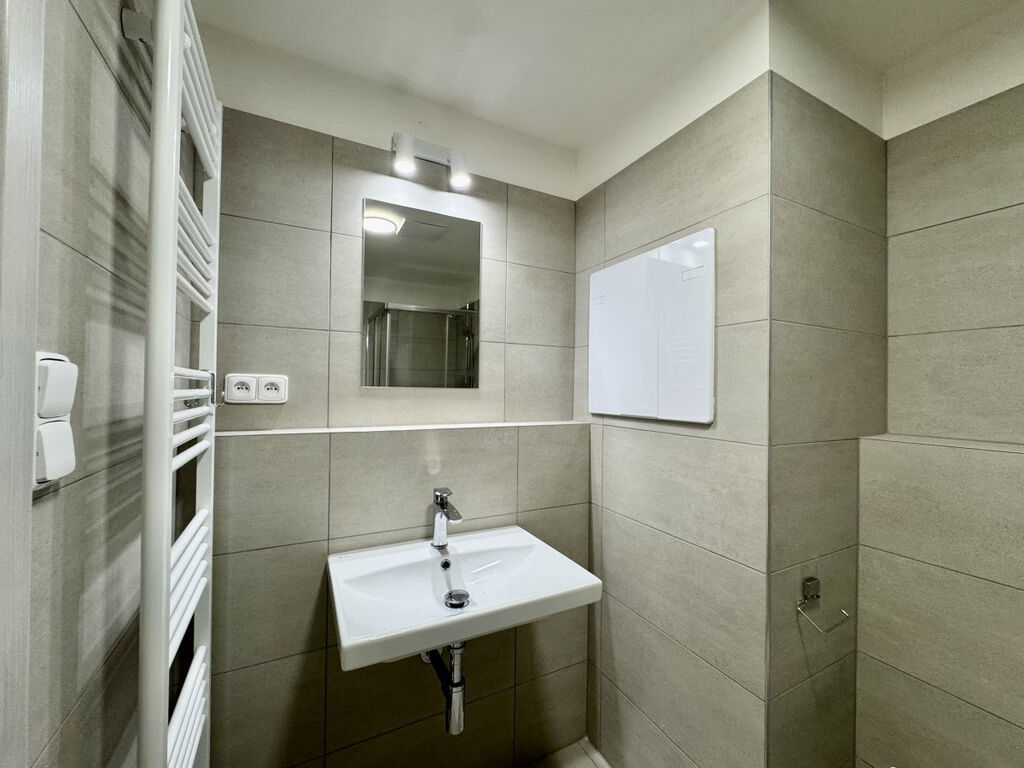 V bytě je nová kuchyňská linka vybavená troubou, varnou deskou a lednicí. Nechybí dostatek úložného prostoru, prostorná vstupní chodba a koupelna se sprchovým koutem a místem pro pračku. O zastínění se starají předokenní rolety.