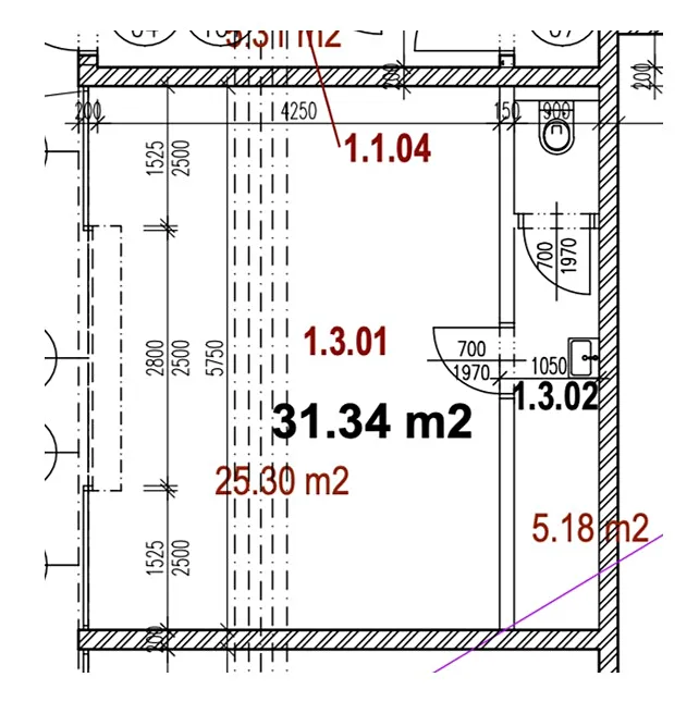 Obchodní jednotka má celkovou plochu 31,34 m².