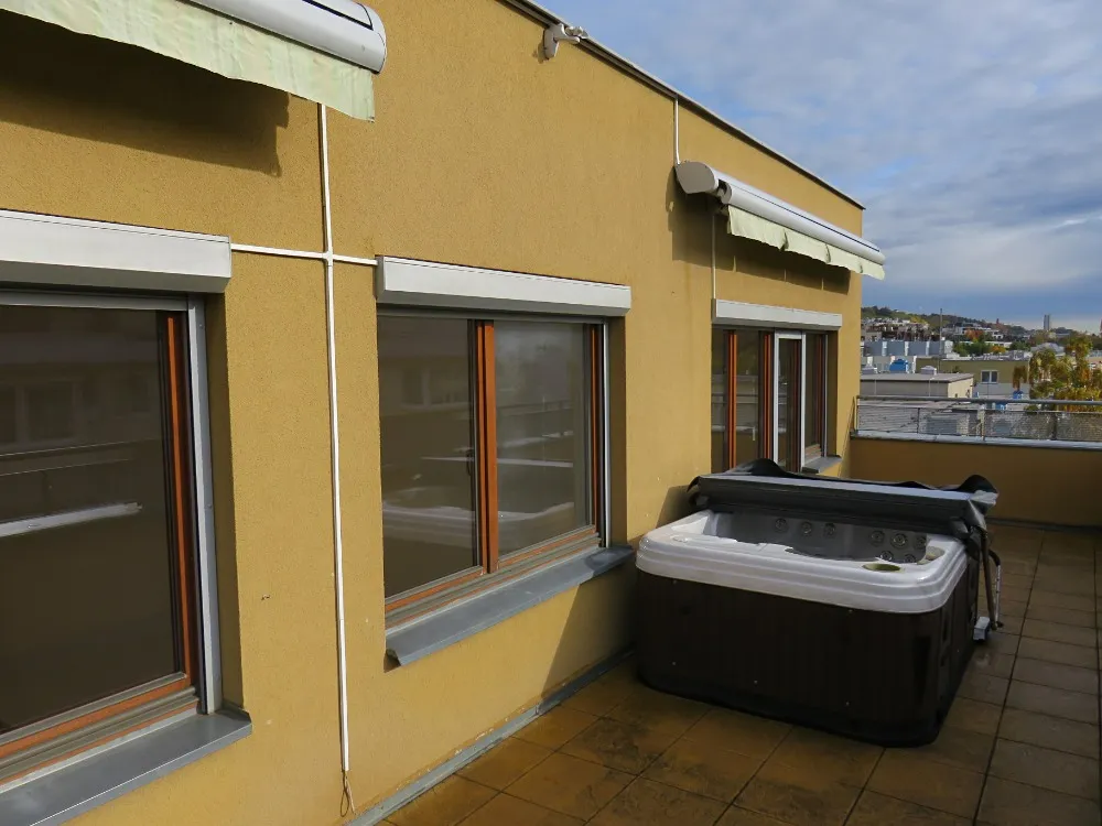 Nabízím prodej mimořádného, světlého bytu 3kk, obytná plocha 105 m2 plus terasa velikosti 43 m2 a podzemní garážové stání. Byt má tři neprůchozí pokoje, z obývacího pokoje a jedné ložnice je přímý vstup na terasu s vířivkou a volným výhledem do okolí. Byt má skvěle řešené úložné prostory, samostatnou šatnu a komoru s policovým systémem, v předsíni jsou vestavné skříně a zároveň i prostor pro umístění dalších skříní. Tepelný komfort v bytě zajišťuje klimatizační jednotka, všechna okna bytu jsou vybavena elektrickými předokenními žaluziemi na dálkové ovládání. Pohodlí budoucích majitelů zajistí dvě koupelny a jedno samostatné WC, větší z koupelen je s vanou a menší koupelna se sprchovým koutem. Byt najdete v klidné lokalitě, která je snadno dostupná na metro A Nemocnice Motol nebo metro B Anděl, přímo přes ulici je základní škola. Byt má plně bezbariérový přístup. Celá stavba je ve velmi dobrém, udržovaném stavu, bytová jednotka je čerstvě vymalovaná, uklizená a připravená přijmout nové majitele.