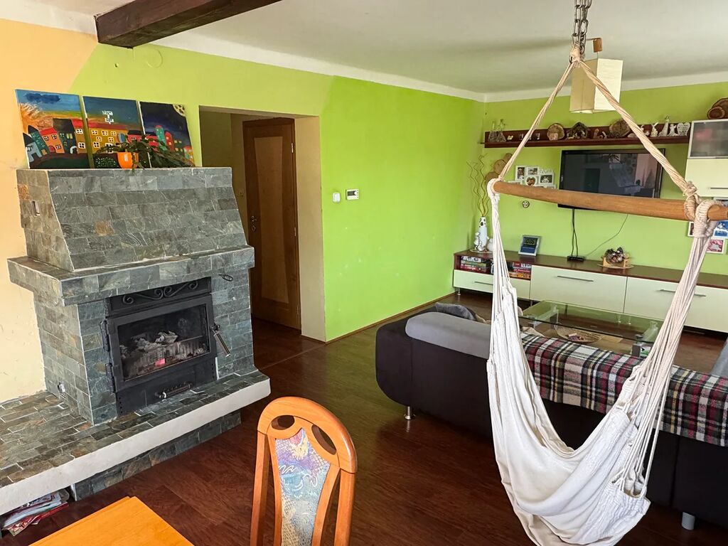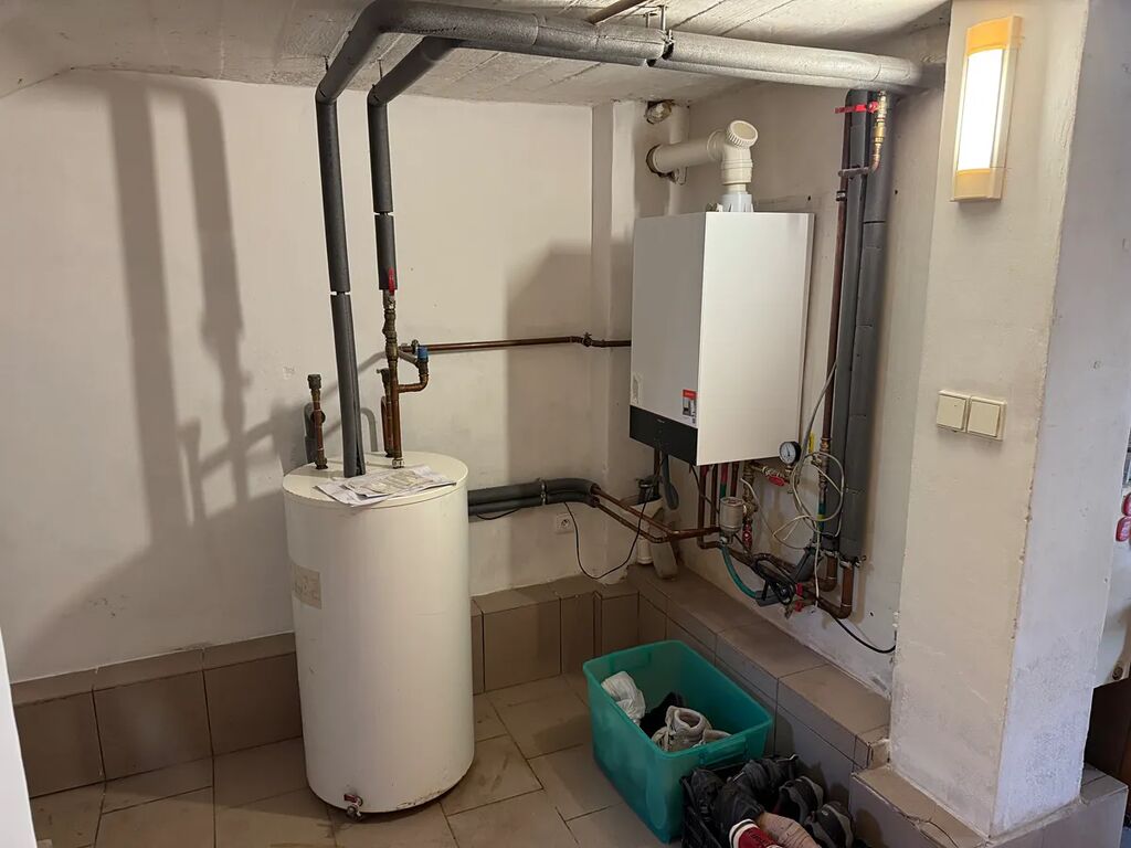 Všechny obytné části domu ( mimo sklep )jsou vytápěné podlahovým topením , které je napojené na plynový kotel umístěný ve sklepě domu a lze využívat i krbová kamna , která mají připojení přes výměníkovou stanici do podlahového topení.