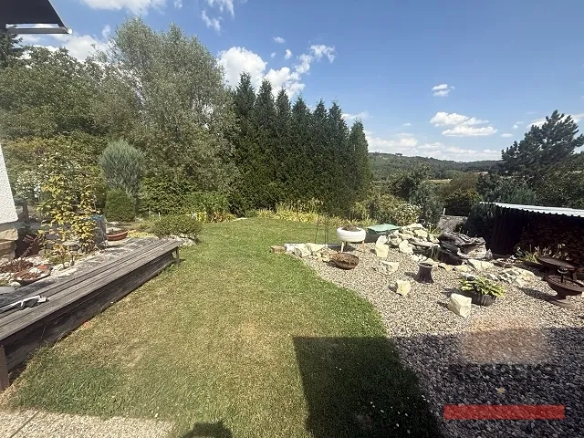 Zahrada je perfektně udržovaná, s okrasnými keři, trvalkami, zeleninovými a ovocnými záhony a spoustou nádherných zákoutí. Je oplocená kvalitním drátěným plotem s vjezdem dvoukřídlými vraty na pozemek.