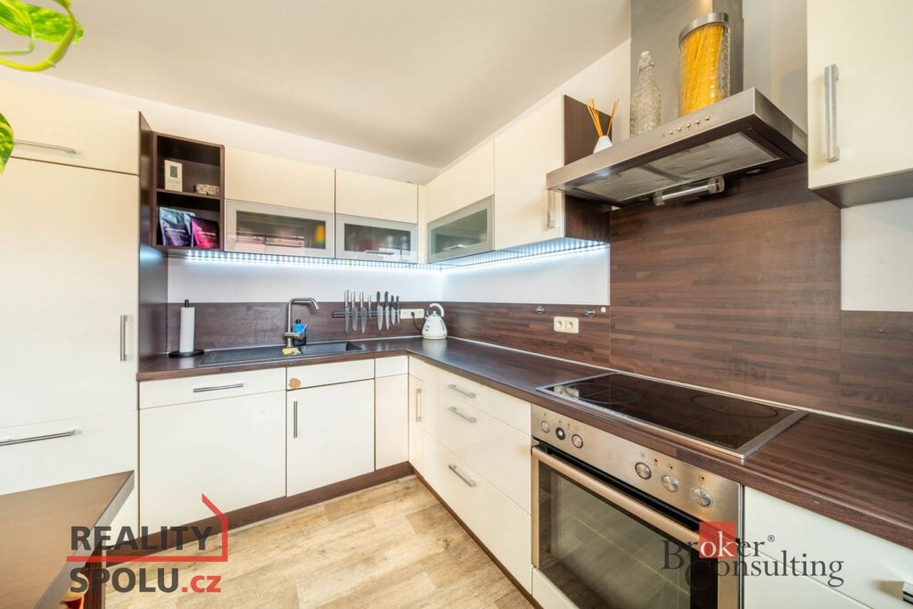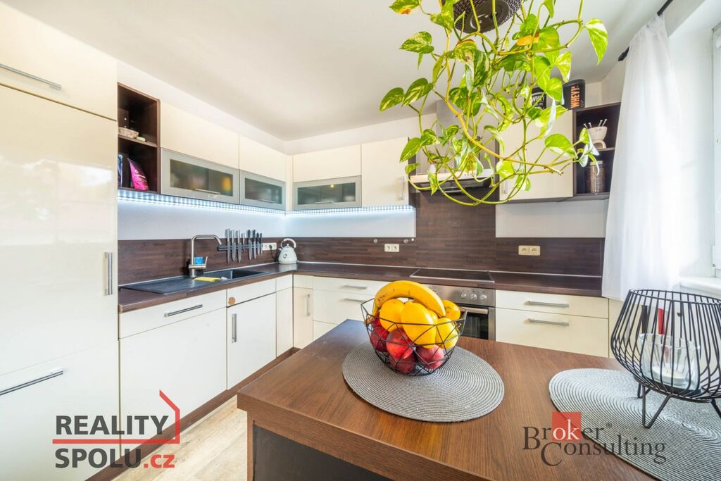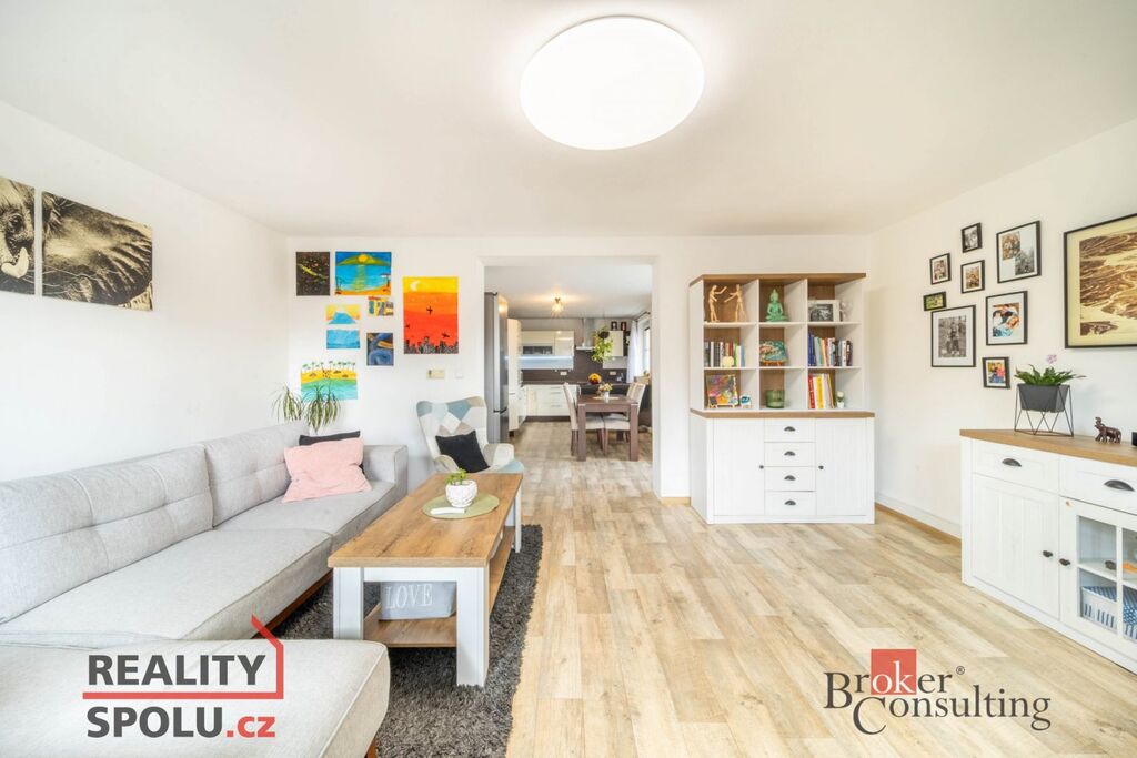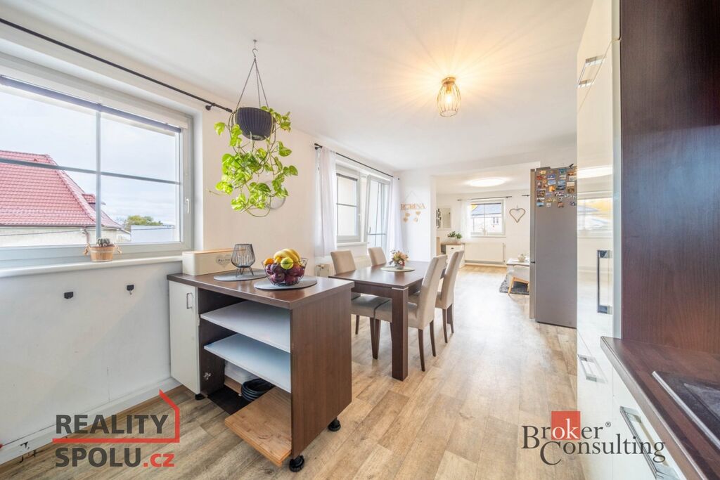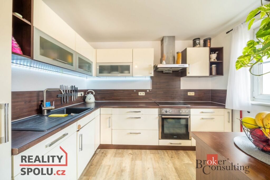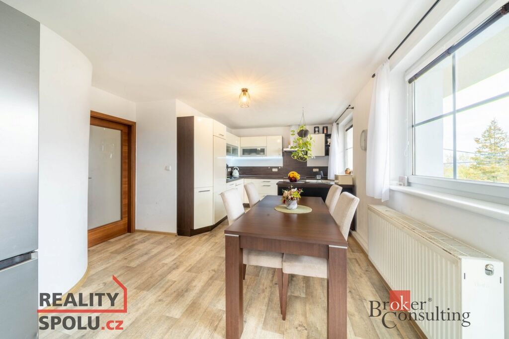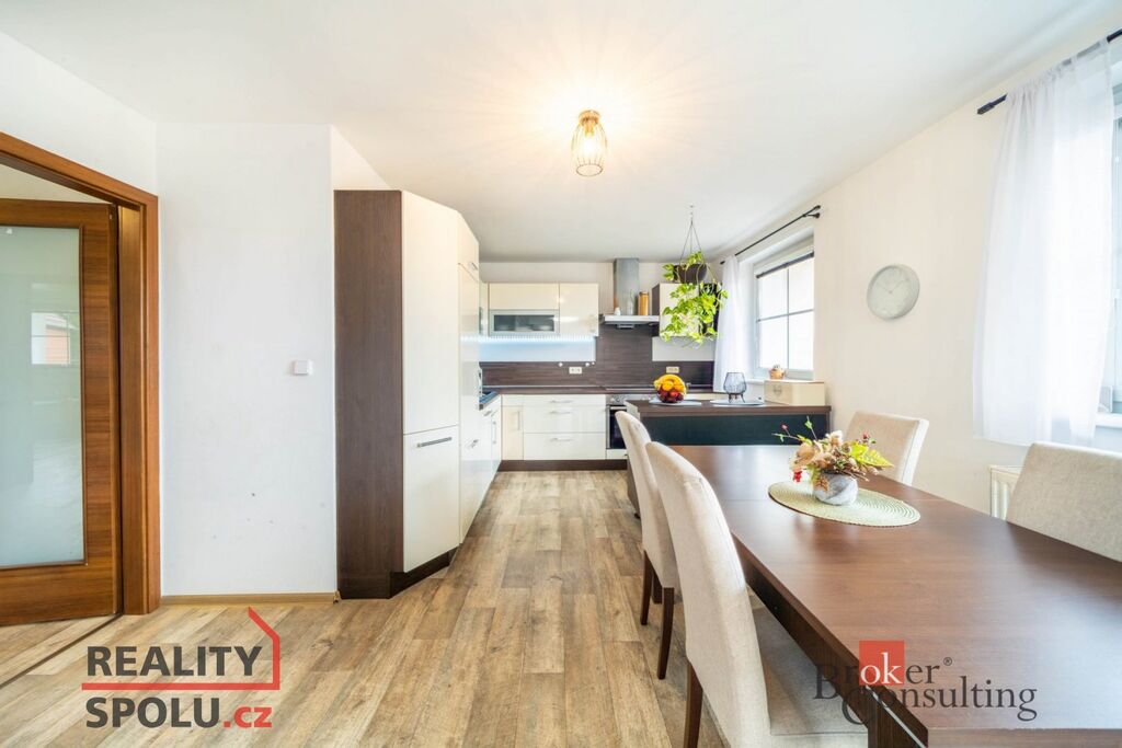 Součástí je byt 3+1 o ploše přes 100 m² s koupelnou, samostatným WC a dvěma lodžiemi. K bytu náleží polovina zahrady s útulným posezením, venkovní kuchyňkou a bazénem, kde si můžete užít klid a soukromí.