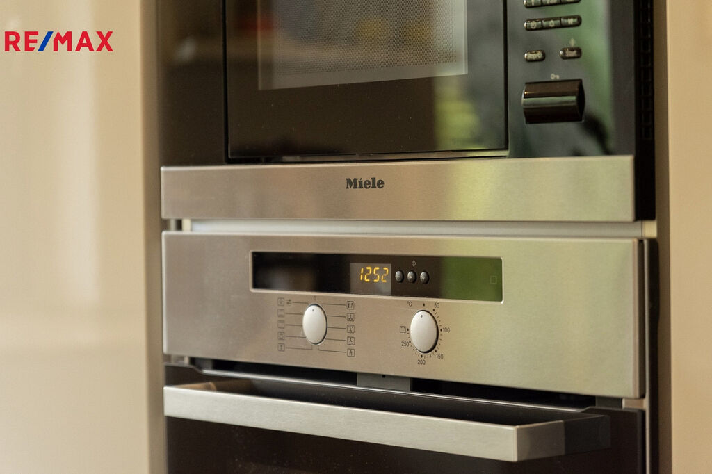 K dokonalosti ji doplňují spotřebiče značky Miele, které podtrhují vysoký standard celého interiéru.