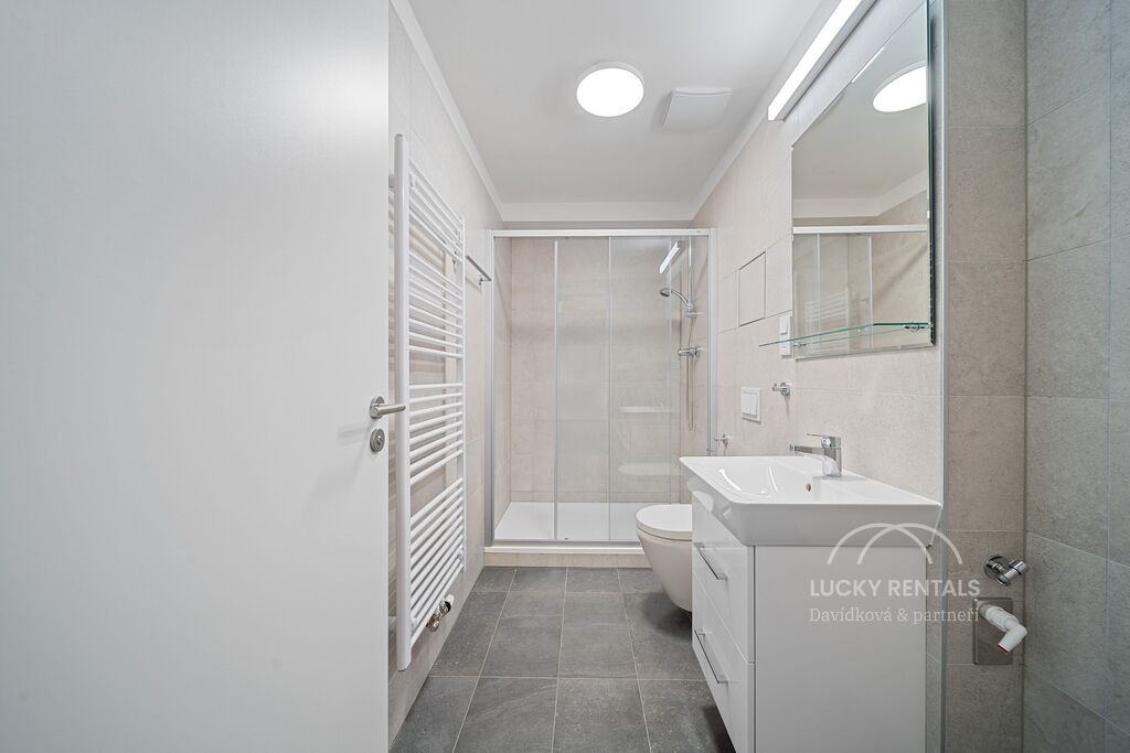 Byt se pronajímá nezařízený, ve vysokém standardu, vybavený o novou kuchyňskou linku značky Oresi s vestavěnými spotřebiči na míru (myčka na nádobí, lednice, varná deska, trouba, digestoř). Bezpečnostní vstupní dveře značky Sapeli, vinylové podlahy, dlažba, kvalitní sanita v koupelně. K bytu náleží sklep.