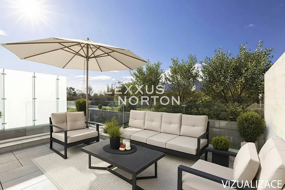 K prodeji nabízíme výjimečnou rodinnou řadovou vilu 6+kk s celkovou podlahovou plochou 304 m² a dvěma parkovacími stáními v podzemních garážích. Tento promyšleně navržený dům je ideální pro rodiny hledající maximální komfort a flexibilitu prostoru. Přízemí domu nabízí velkorysý obývací prostor s přípravou pro kuchyňský kout (63 m²) s přímým výstupem na terasu s výhledem do zeleně přilehlého lesoparku. V přízemí je dále k dispozici pokoj pro hosty s vlastní koupelnou a toaletou, který může sloužit také jako pracovna. První patro disponuje hlavní ložnicí 21 m² s vlastní koupelnou a šatnou, 2 prostornými ložnicemi (18,5 m², 19,5 m²) a další samostatnou koupelnou se sprchou a vanou. Korunou domu je krásná střešní terasa 74 m² s výhledy do okolní zástavby a zeleně, kterou lze při zastřešení využívat téměř celoročně.