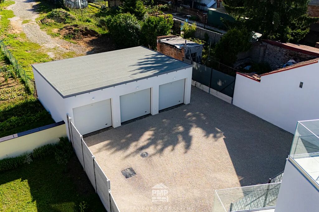 Nabízíme Vám ke koupi novostavbu rodinného domu se třemi bytovými jednotkami, třemi garážemi a venkovním parkovacím stáním v obci Nebovidy.