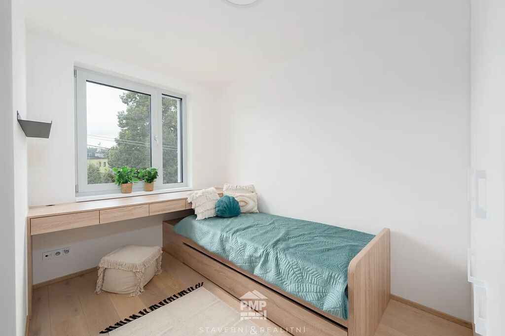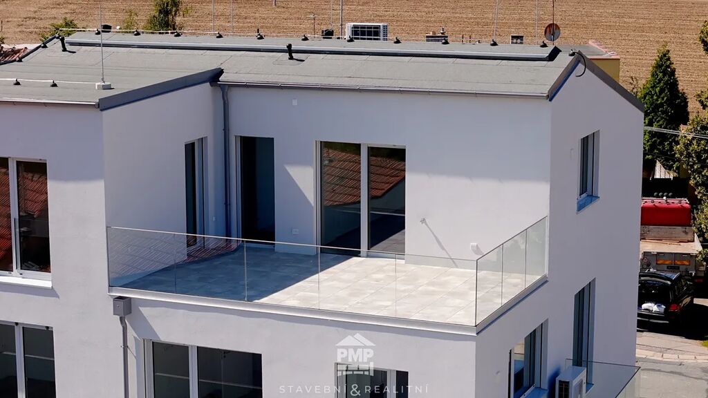 Přízemní bezbariérový byt 3+kk (90 m²) nabízí přímý vstup na terasu se zahrádkou o velikosti cca 51 m². Je ideální pro rodiny s dětmi, starší osoby nebo kohokoliv, kdo ocení vlastní kousek zeleně. Byt v druhém nadzemním podlaží (4+kk, 101,7 m²) je největší z celého domu. Jeho interiér byl navržen architektonickou kanceláří, je kompletně zařízený nábytkem na míru a připravený k nastěhování. Součástí je L-balkon o velikosti 19 m². Třetí byt se nachází v podkroví a má dispozici 3+kk (76,7 m²). Nabízí rozlehlou rohovou terasu s výhledem na obec a okolní přírodu.