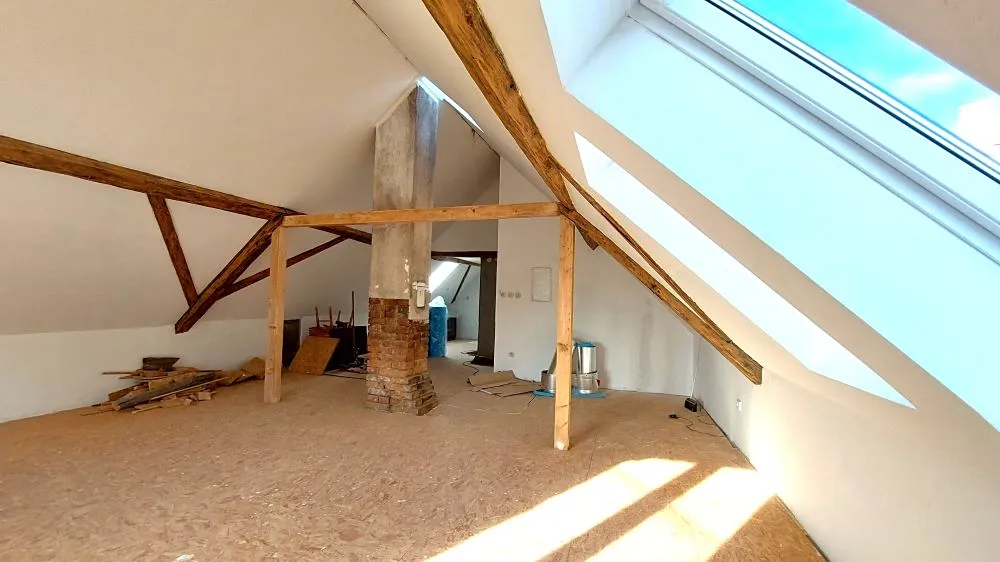V posledním roce realizovaná vestavba půdního bytu 1+kk, cca 90m², nová střecha včetně izolací a střešních oken. Prostor je před dokončením finálních ploch, kuchyně a koupelny a WC. Hotové rozvody IS, příprava pro koupelnu a kuchyň. V rámci této vestavby a rekonstrukce střechy byla v celém domě vyměněna okna za plastová (izolační trojsklo).