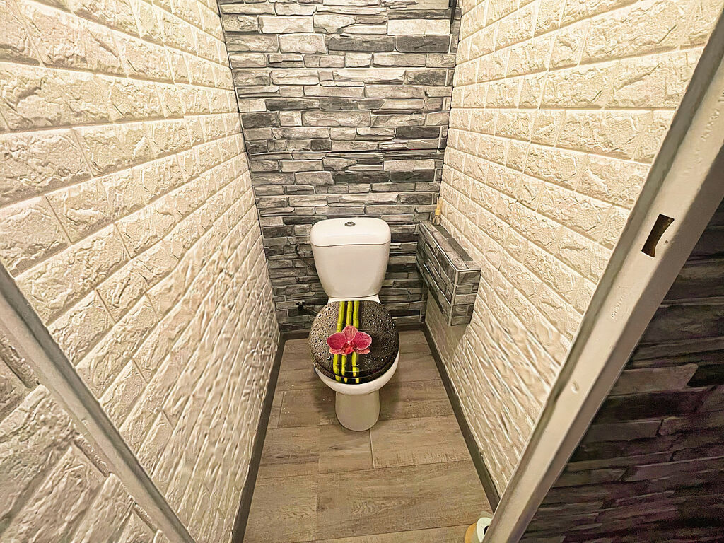 Byt se skládá z předsíně s botníkem a skříní, prostorného pokoje s kuchyňským koutem a z koupelny se sprchovým koutem. Toaleta je samostatná. Orientace bytu je východním směrem.
