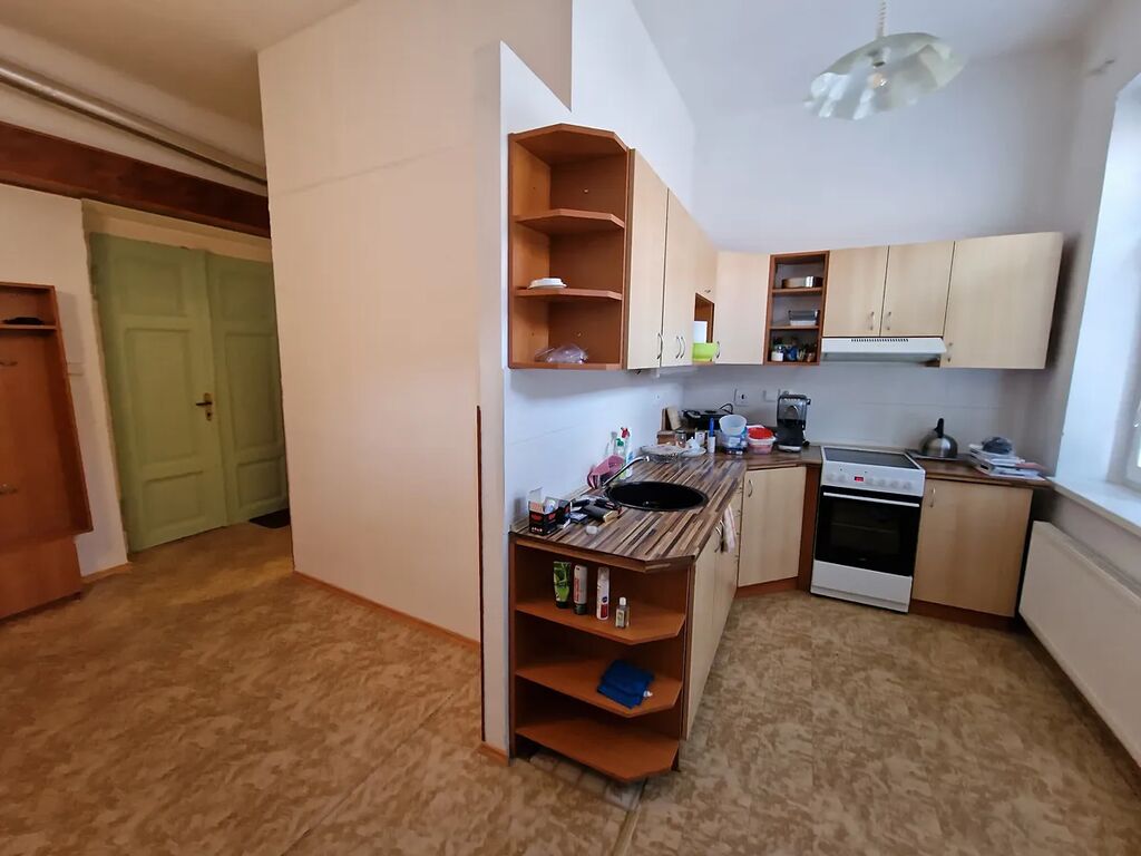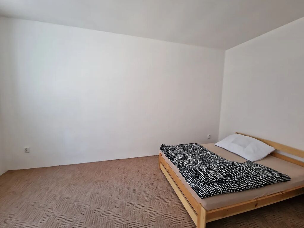 Dispozice: prostorná vstupní chodba, vyzděná koupelna s WC, kuchyň, obývací pokoj a ložnice. Součástí nájmu je prostorná uzavřená komora umístěná na chodbě domu. Udržovaný byt je vybavený kuchyňskou linkou, lednicí, el.sporákem a digestoří.